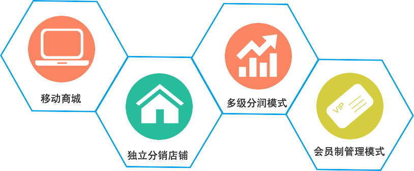 集“移動(dòng)商城+獨(dú)立分銷店鋪+多級分潤模式/會(huì)員制管理模式